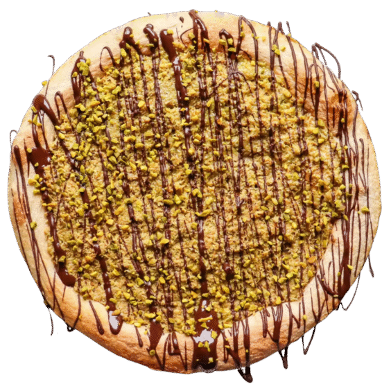 A sweet twist to your favorite pizza – the Dubai Chocolate Pizza! Rich chocolate spread on a soft crust, topped with a drizzle of sweetness for dessert lovers. Perfect for satisfying chocolate cravings.